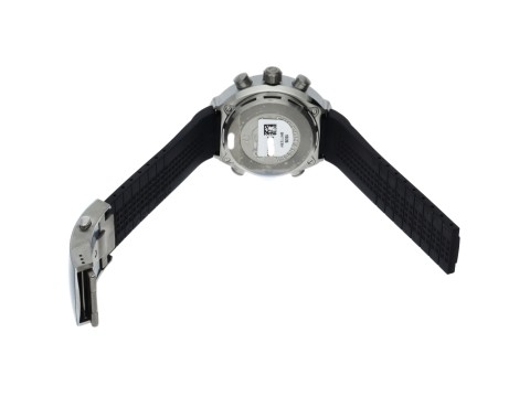Le cadran noir mat est sobre et élégant, avec des index et des aiguilles recouverts de luminescent pour une visibilité optimale dans l’obscurité. La date est affichée à 6 heures, tandis que les complications de chronographe et de mesure du temps sont disposées de manière intuitive sur le cadran.