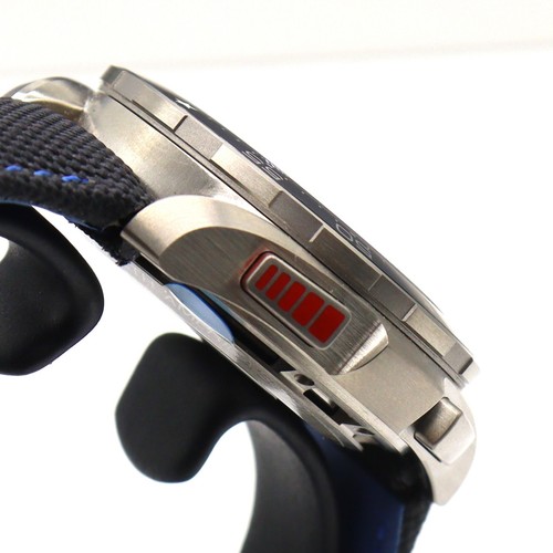 La montre est équipée d’un boîtier en titane de 45 mm de diamètre, qui est à la fois léger et robuste. Le cadran est noir avec des index et des aiguilles lumineux, ce qui permet une lecture facile des informations, même dans les conditions de faible luminosité. La couronne et les poussoirs sont ergonomiques et faciles à manipuler, même avec des gants de voile.