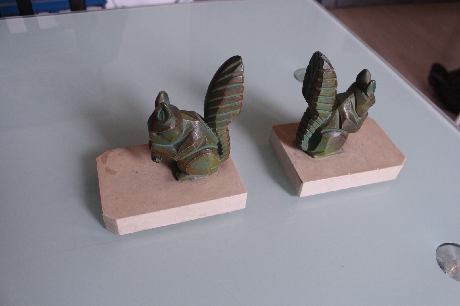 Paire de serre-livres en forme d’écureuil Art Déco signés H. Moreau, « Hippolyte