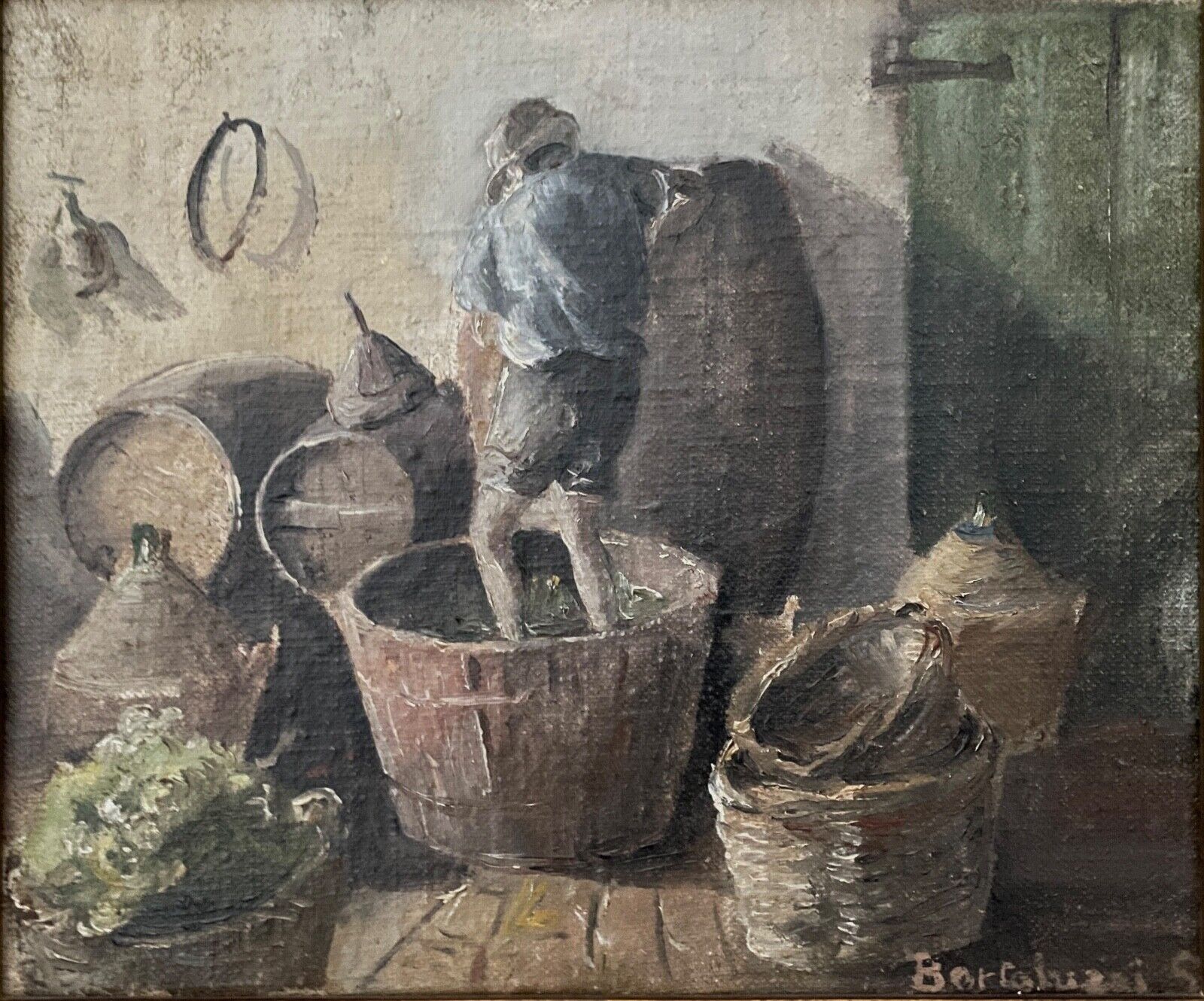 Le Vigneron : Un Tableau Ancien Évoquant l’Époque du Vin et du Raisin