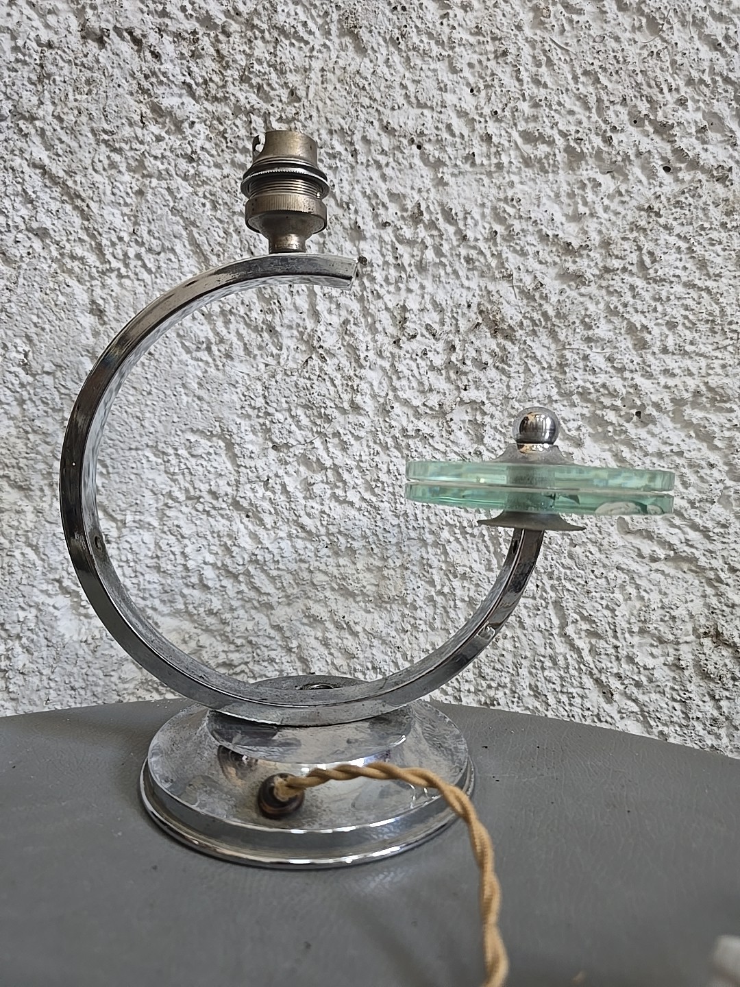 Pied de lampe art-déco en métal chromé, dlg Adnet Moderniste