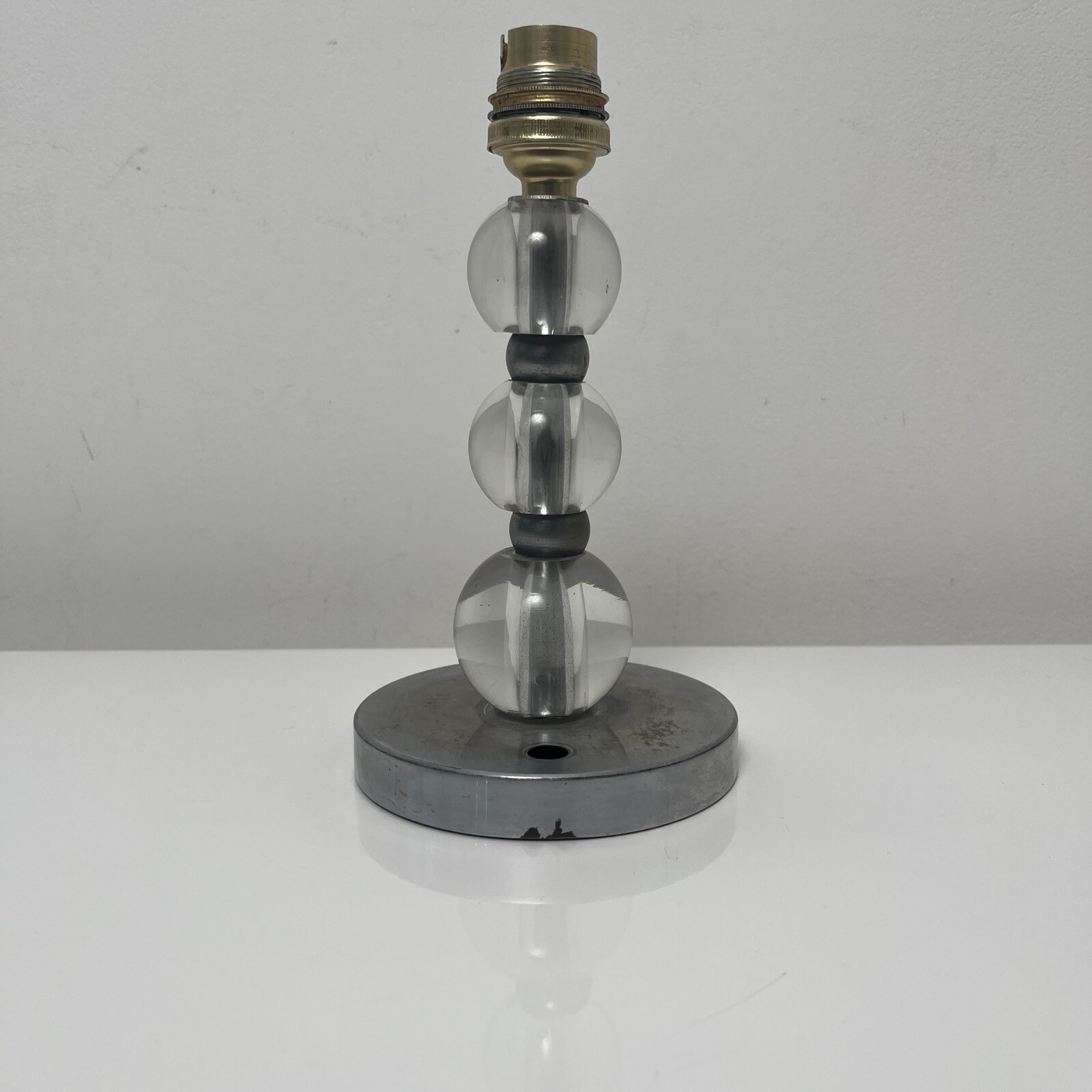 Pied de lampe boule verre et laiton nickelé Art Déco dlg Adnet a restaurer PL