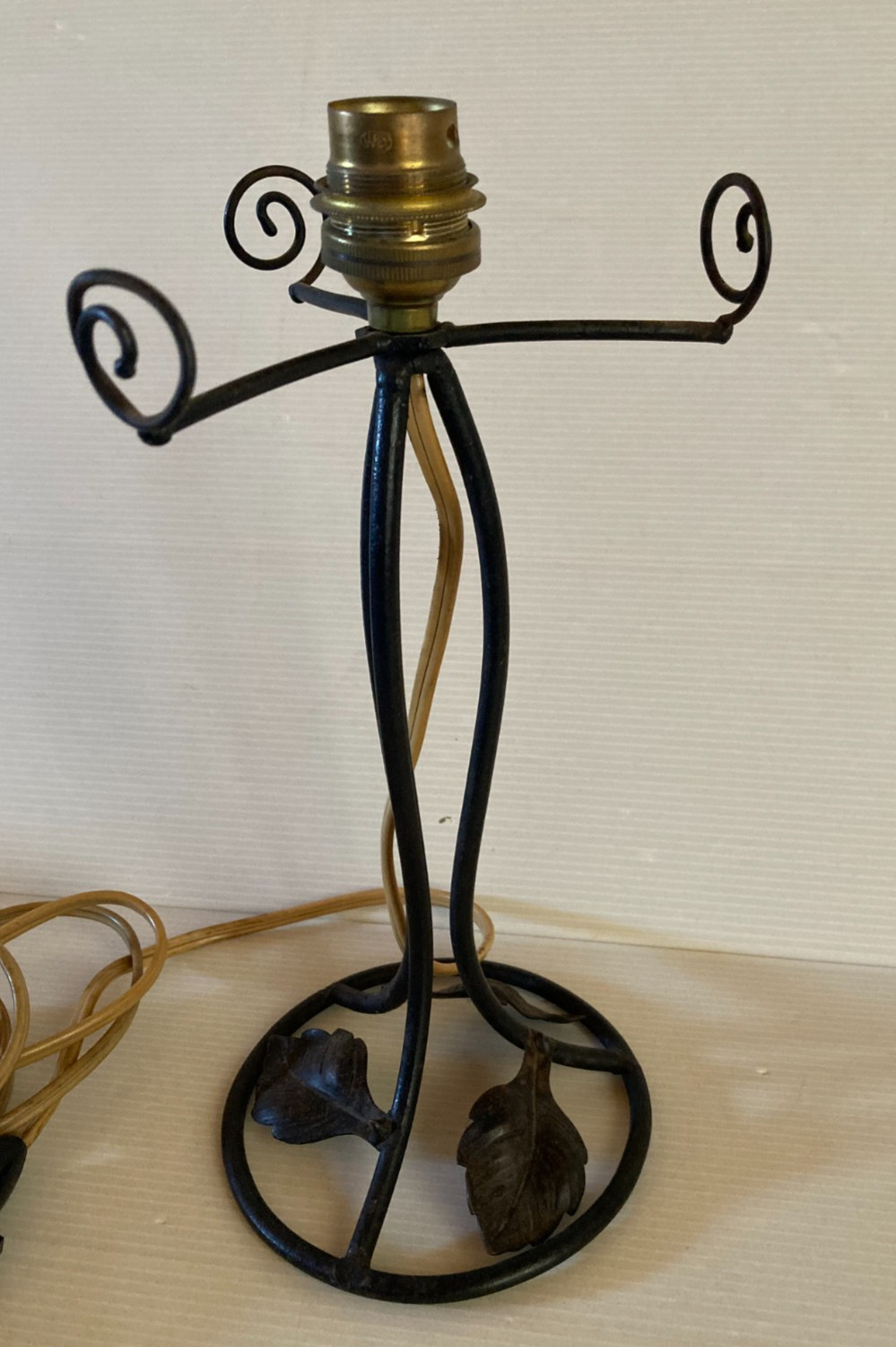 Pied de lampe en fer forgé patine noir décor floral Art déco nouveau