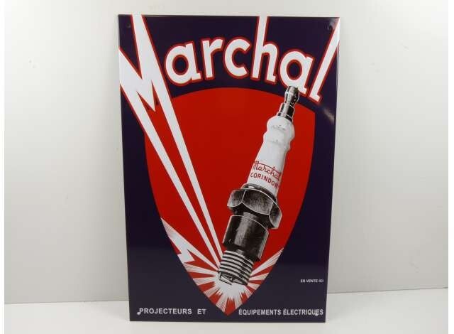 La plaque publicitaire réédition Marchal bougie est une reproduction fidèle des anciennes plaques publicitaires qui ont été utilisées pour promouvoir les produits Marchal dans les années 50 et 60. Ces plaques publicitaires originales étaient généralement en métal ou en verre et portaient le logo de la marque, ainsi que des slogans publicitaires qui mettaient en avant les avantages des bougies d’allumage Marchal.
