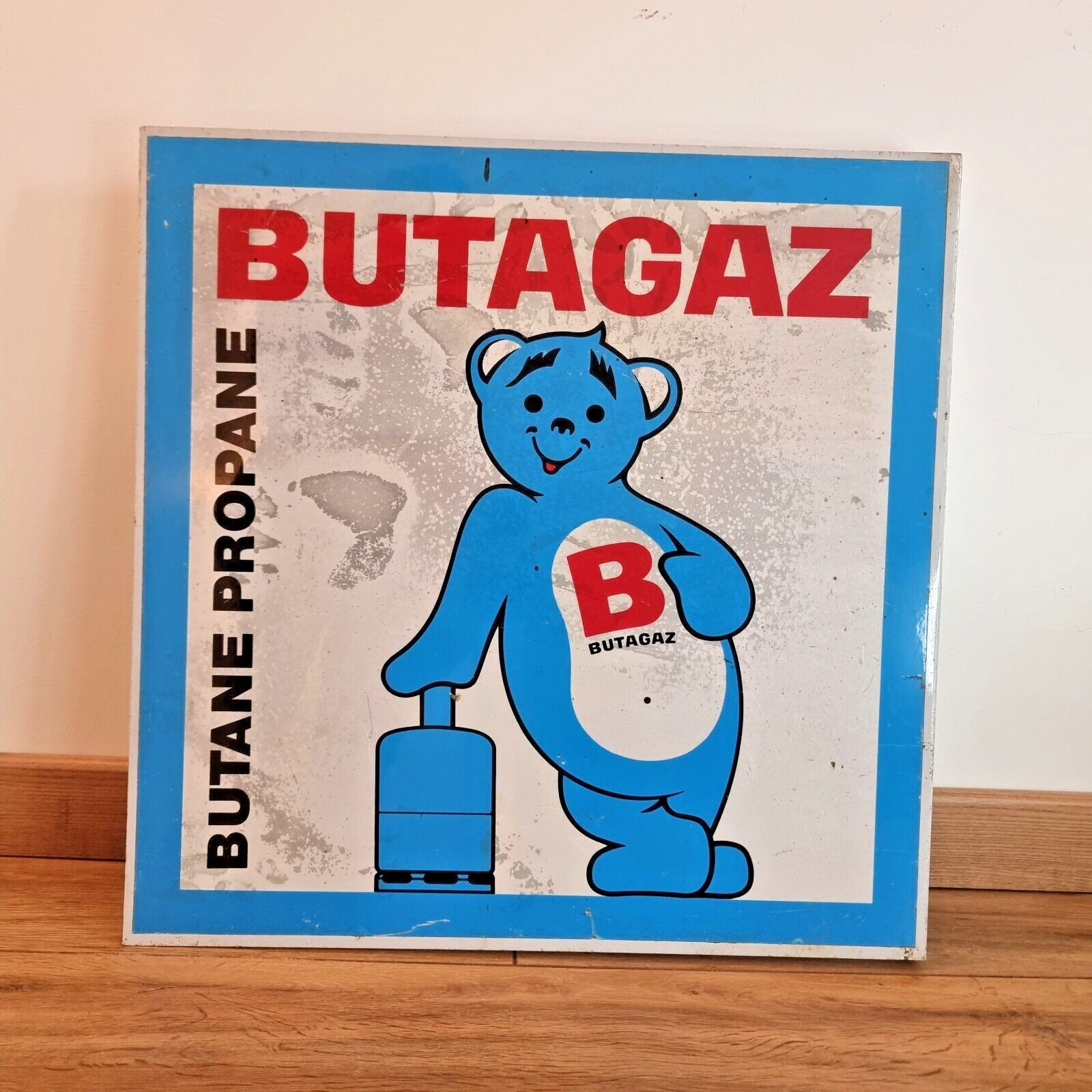 Butagaz est une marque française créée en 1930, spécialisée dans la distribution de gaz en bouteilles. Au fil des ans, la marque a développé une identité visuelle forte, avec un logo et une communication publicitaire qui sont devenus emblématiques. Les plaques publicitaires Butagaz sont devenues des objets de collection très prisés, notamment les modèles plus anciens qui arborent le design rétro des années 50 et 60.