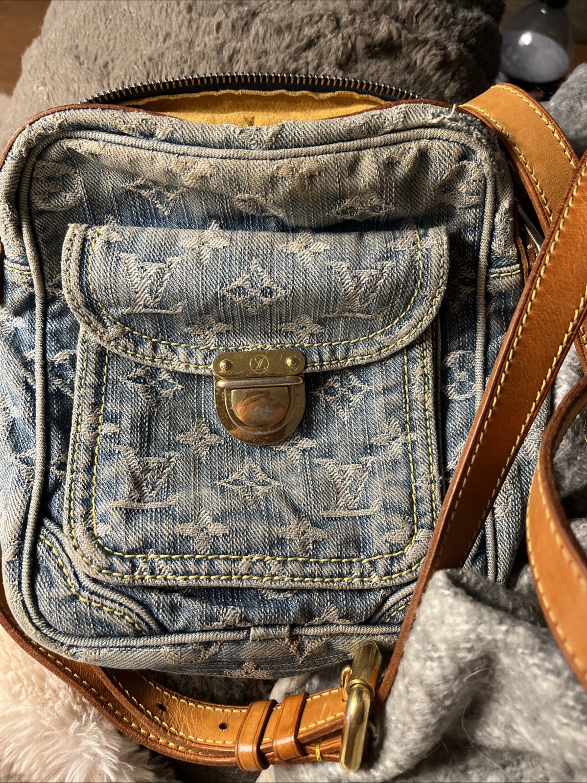 Pochette Denim Louis Vuitton Vintage 2005, Bon etat , Longue Bandoulière en Cuir