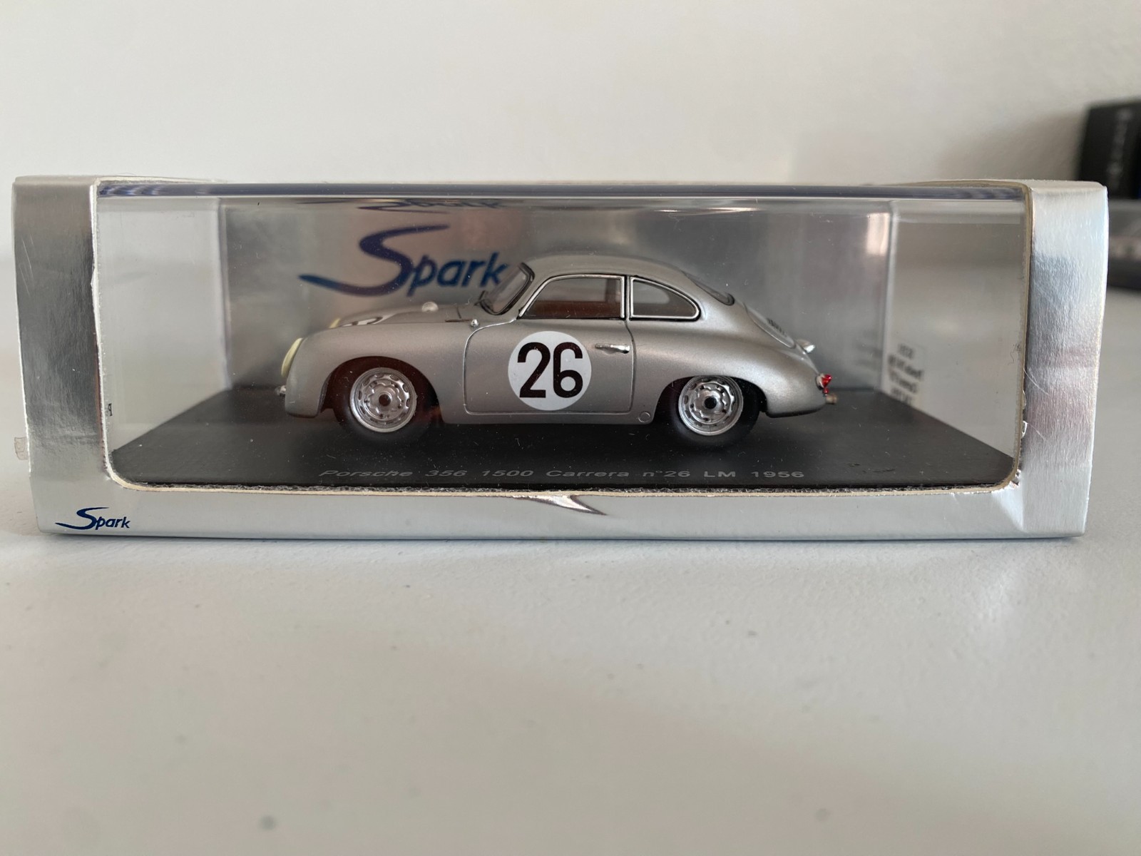Les amateurs de voitures de course et de modèles réduits sont en mesure de se procurer une réplique miniature à l’échelle 1/43 de la Porsche 356 1500 Carrera qui a participé aux 24 Heures du Mans en 1956. Cette miniature, réalisée par la marque SPARK, est une reproduction fidèle de la voiture qui a couru sous le numéro 26 lors de cette édition mythique de l’épreuve mancelle.