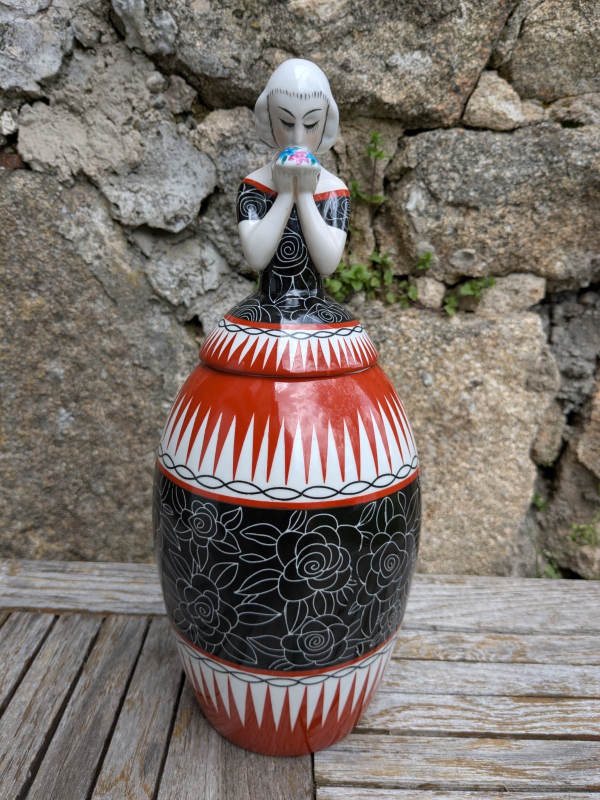 Découvrez la rare bonbonnière en porcelaine Art Déco de Robj Paris : une danseuse au bouquet de 1930