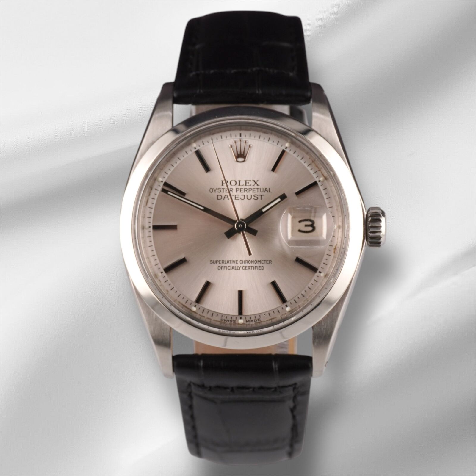 Rolex 36Mm Datejust Montre Homme Acier Cuir Lisse Cadran Argent 1600