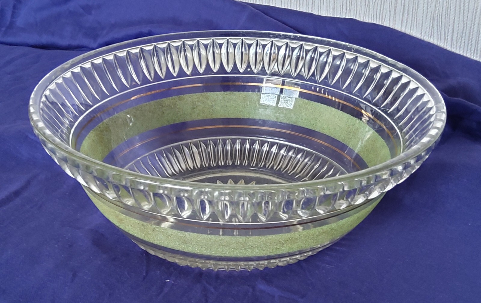 SALADIER EN VERRE VINTAGE AVEC BANDE GRANITÉE VERTE