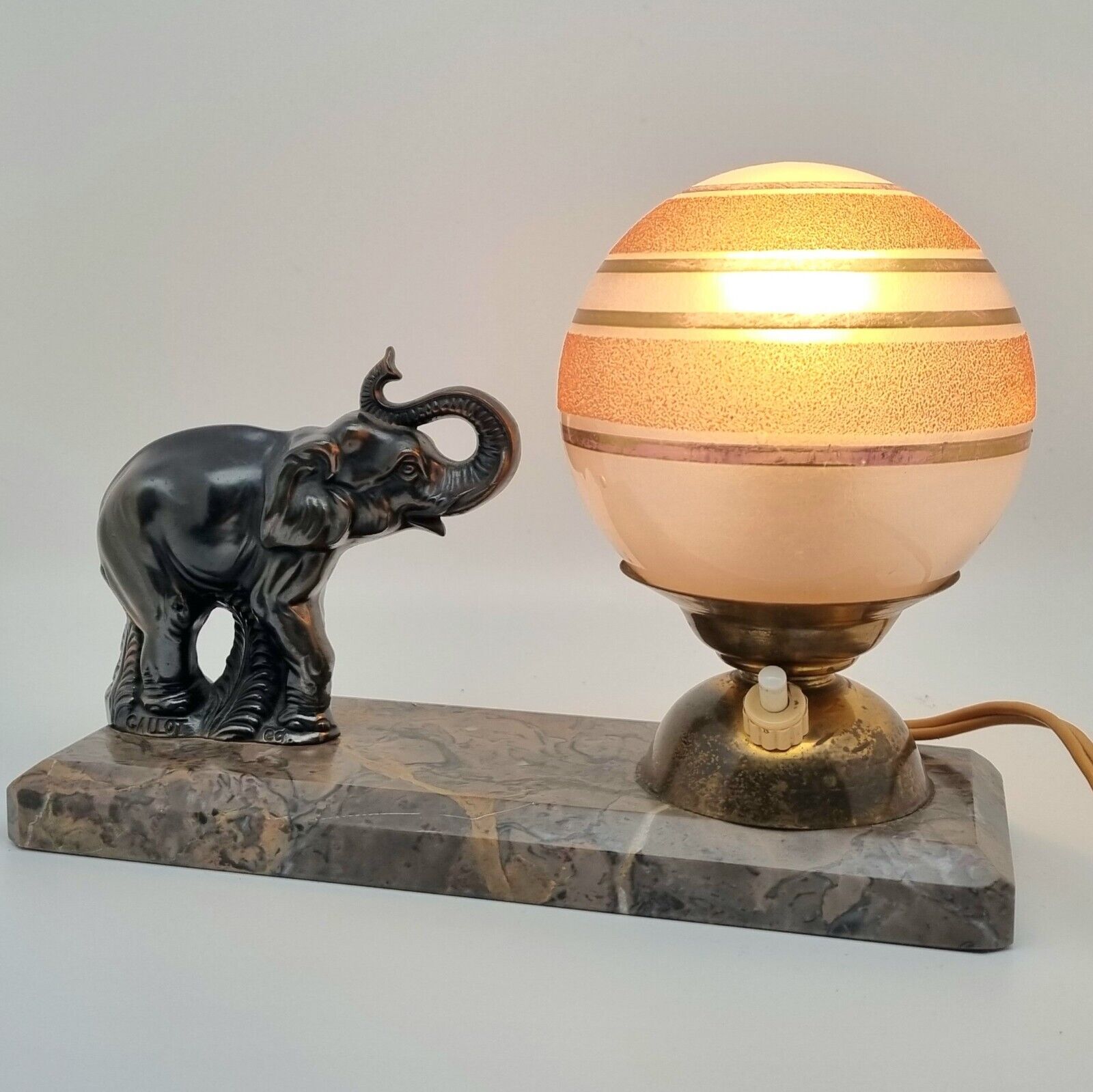 signée GALLOT Ed ❤️ Très belle lampe art déco Eléphant en régule sur socle en ma