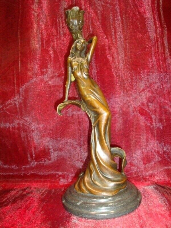 Statue Sculpture Bougeoir Demoiselle Romantique Style Art Deco Style Art Nouveau