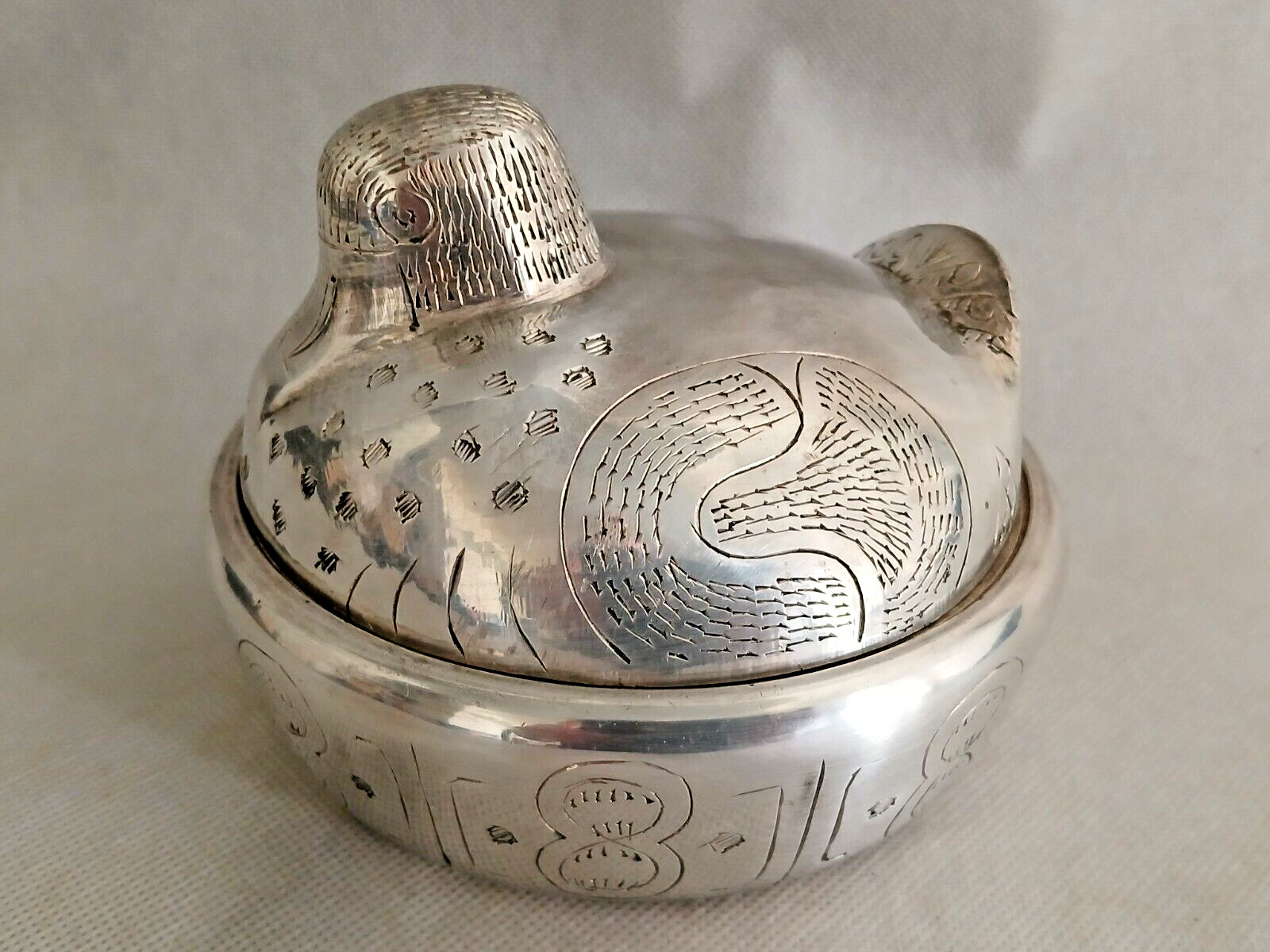 Découvrez la Superbe Bonbonnière Canard en Métal Argenté Art Déco