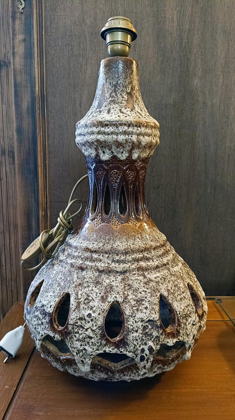 Superbe Lampe Vintage 1970s – Céramique Ajourée – Double Éclairage – Fat Lava
