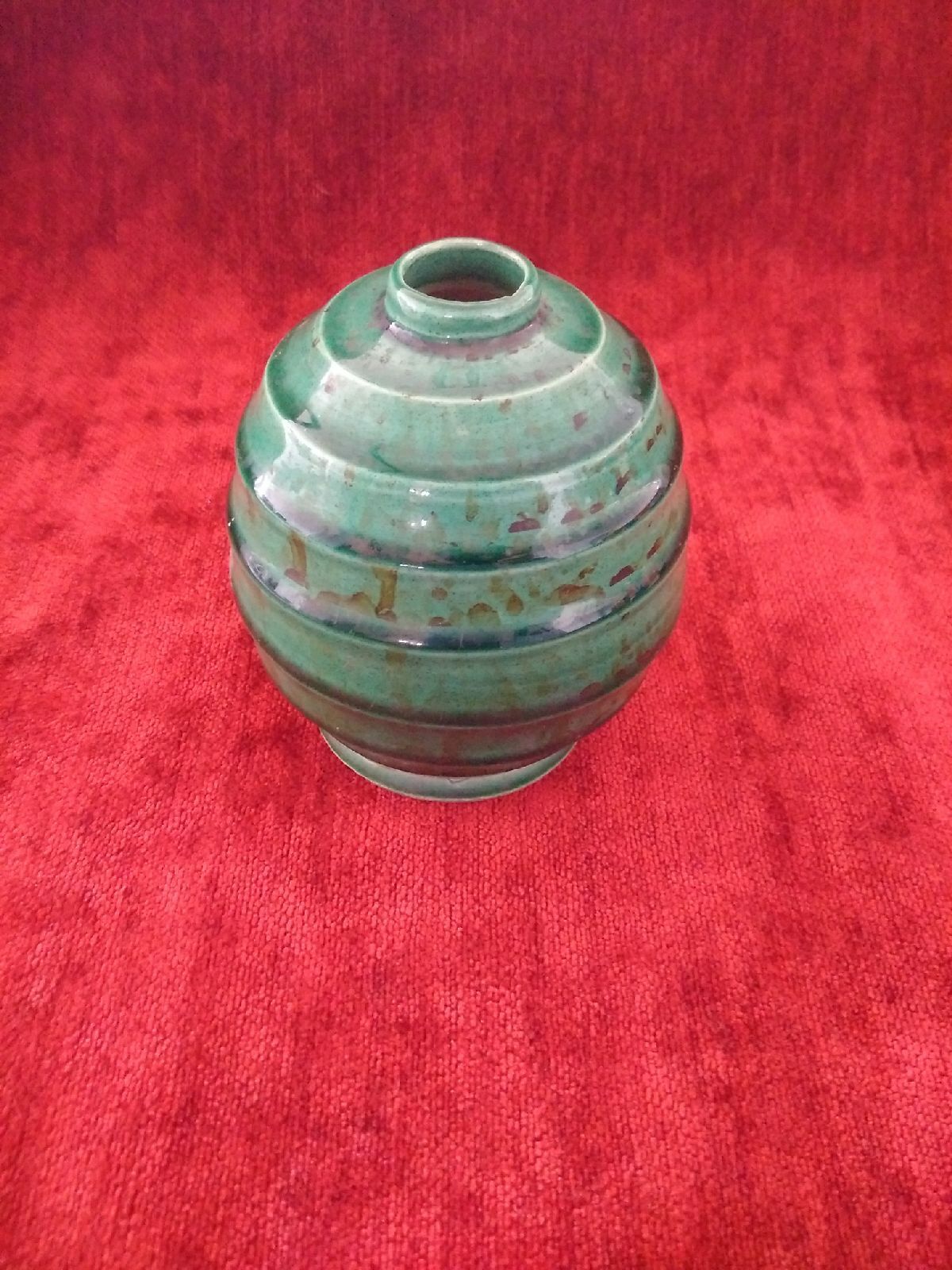 Ce superbe pied de lampe céramique craquelée verte Art Deco signée, présenté dans un état impeccable, est un trésor pour tous ceux qui apprécient le beau et l’exceptionnel. Que vous soyez un collectionneur averti, un amateur d’art ou simplement quelqu’un qui cherche à ajouter une touche d’élégance à votre intérieur, cette pièce est sans conteste un choix éblouissant. Avec son style raffiné, sa technique artistique et son état de conservation exceptionnel, ce pied de lampe promet de devenir le joyau de votre collection ou le point focal de votre espace de vie.