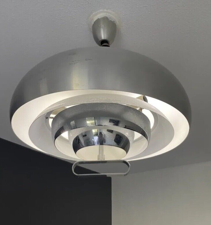 Suspension luminaire Space âge alu brosse chrome vintage lampe éclairage design