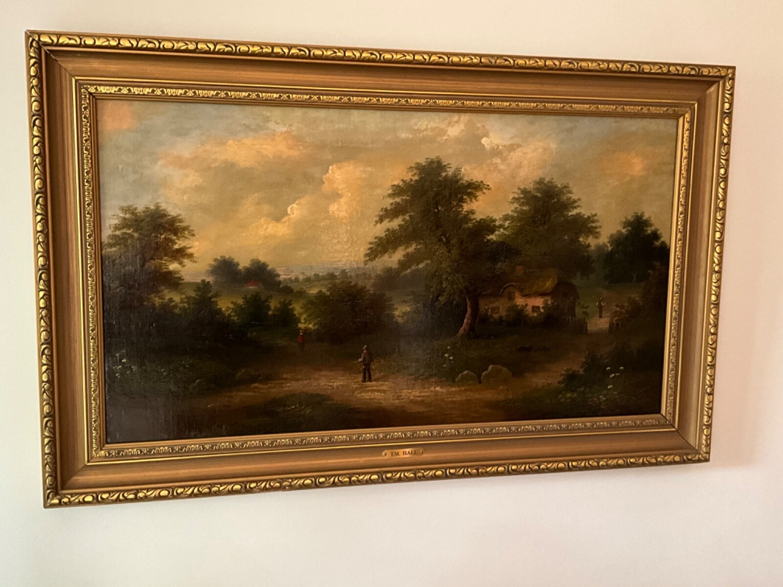 tableau ancien paysage / landscape oil painting T.M. Hall (19th century)