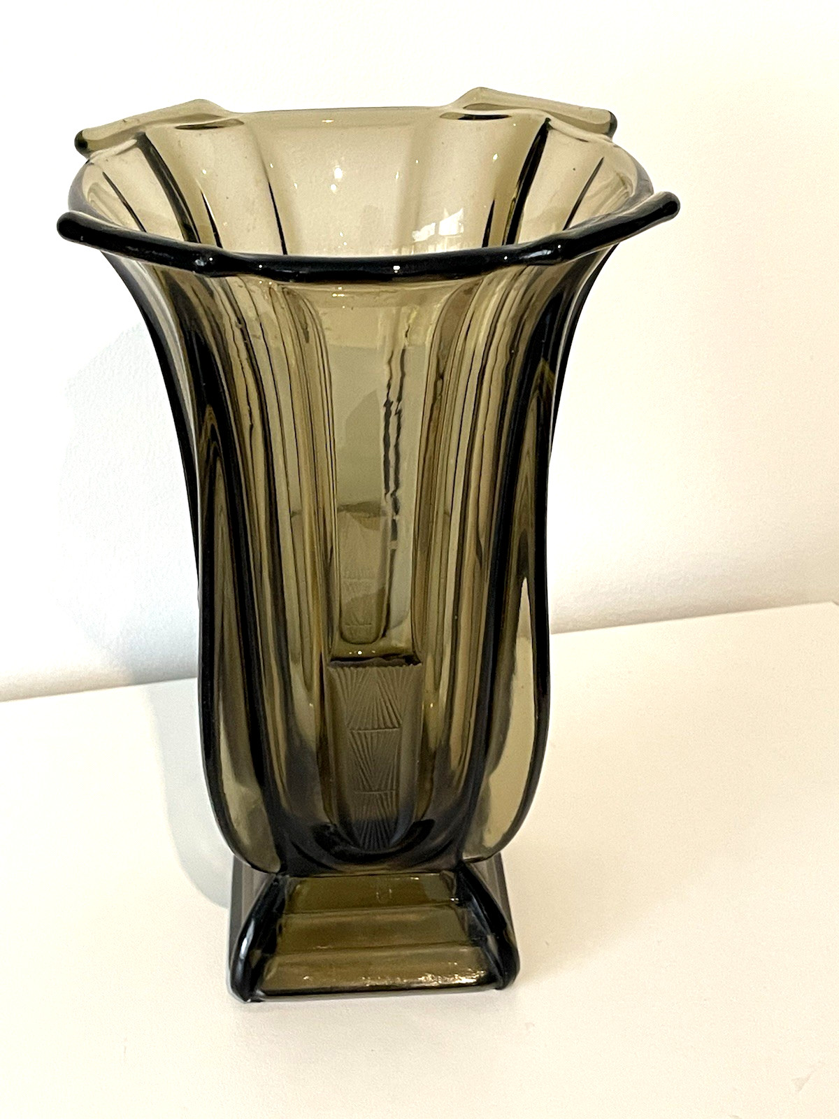Vase art déco en verre fumé Walther glass modèle Sigrid 1952.