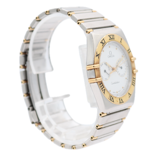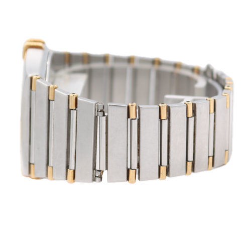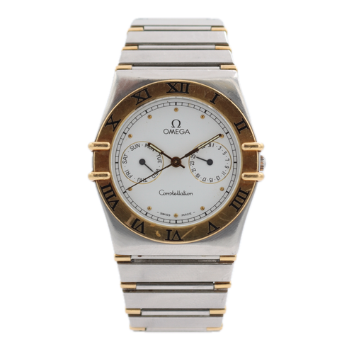 La montre Omega 396.1070 Constellation est un modèle qui date des années 80, une époque où la marque suisse dominait le marché de l’horlogerie de luxe. Ce modèle est caractérisé par son boîtier rond de 34mm, une taille qui était considérée comme standard pour les montres pour hommes à l’époque. Le boîtier est en deux tons, avec un mélange d’acier inoxydable et d’or, ce qui lui confère une élégance distinctive.