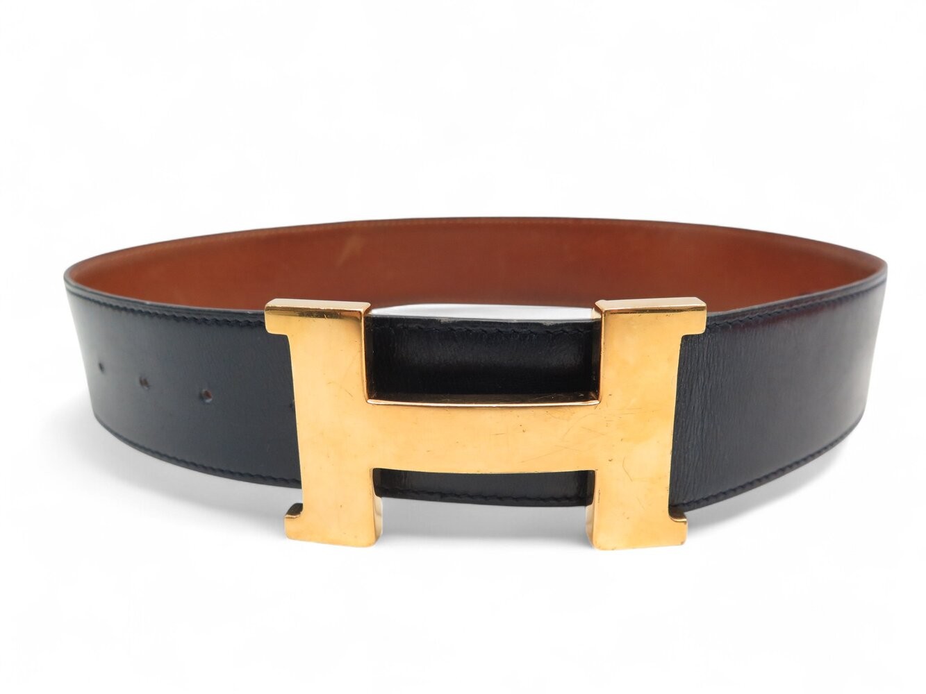 VINTAGE CEINTURE HERMES BOUCLE CONSTANCE XL CUIR BOX NOIR T75 + BOITE BELT 920€