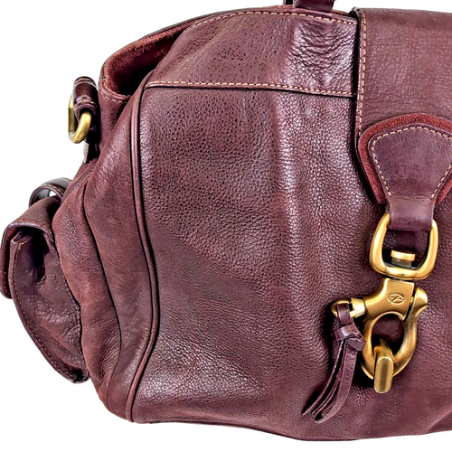 Sac à main vintage Francesco Biasia en cuir aubergine Deep Purple avec métal doré à l’italienne