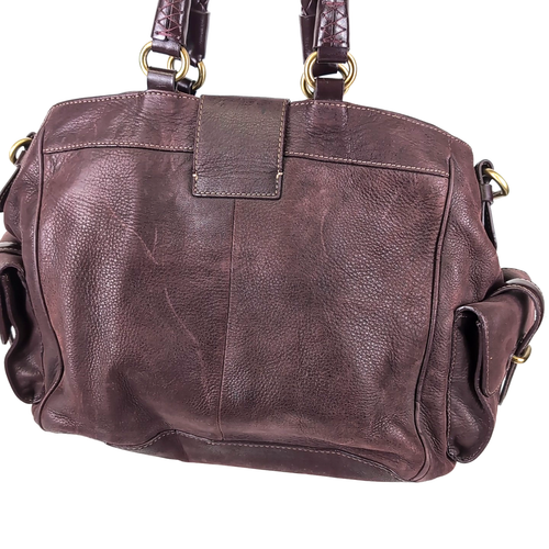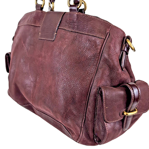 Vintage Francesco Biasia Deep Purple Eggplant Leather Handbag Gold Brass Italy