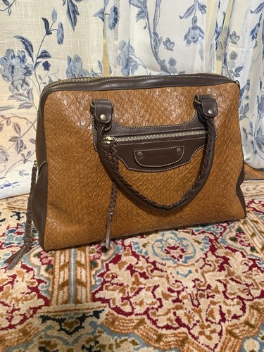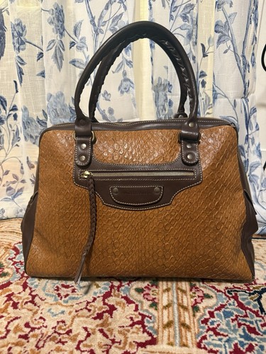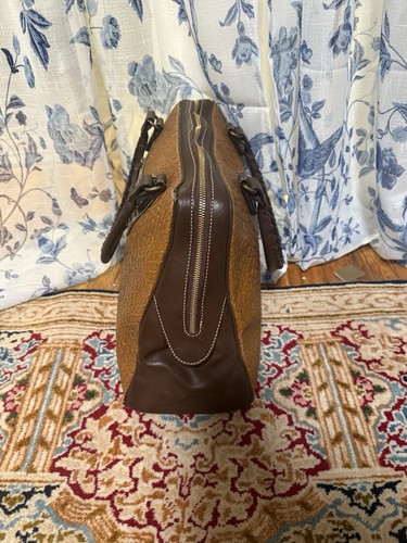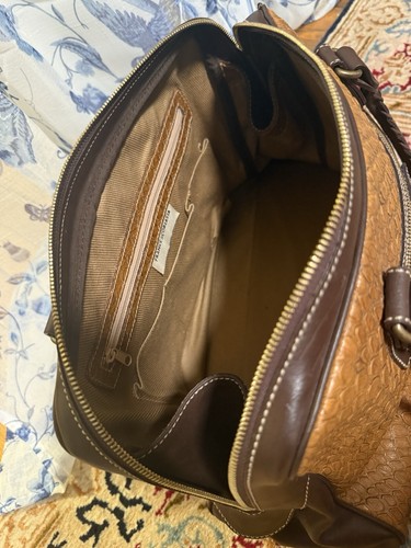 Vintage FRANCESCO BIASIA Textured Brown Leather Large Handbag w/ Leather Braids