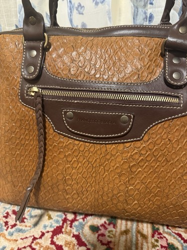 Sac à main vintage FRANCESCO BIASIA en cuir brun texturé avec tresses en cuir