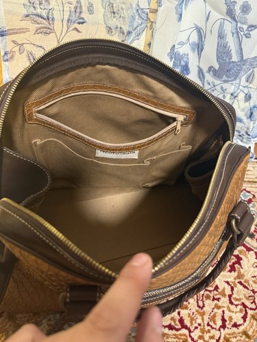 FRANCESCO BIASIA est une marque italienne qui a fait ses preuves dans le monde de la mode, notamment pour ses sacs à main de haute qualité et son style élégant. Les créations de la marque sont souvent caractérisées par leur simplicité, leur élégance et leur attention aux détails. Le sac à main vintage FRANCESCO BIASIA en cuir brun texturé avec tresses en cuir est un exemple parfait de ce style, avec son design classique et son cuir de haute qualité.