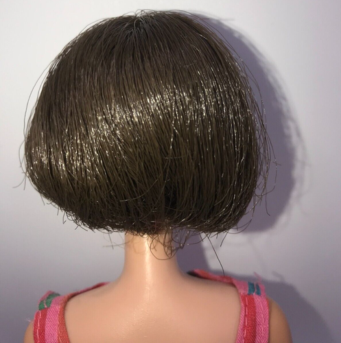 La poupée Mattel Barbie American Girl brune des années 1960 est une véritable rareté. Fabriquée au Japon, elle porte le numéro de stock 1070 et dispose de caractéristiques uniques qui la distinguent des autres modèles. Ses cheveux bruns sont coiffés dans un style caractéristique des années 1960, avec des boucles et des vagues qui ajoutent à son charme. Ses yeux bleus brillants et son sourire enjoué donnent à la poupée une expression joyeuse et épanouie.