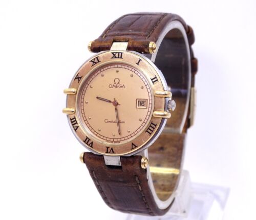 Vintage OMEGA CONSTELLATION 33mm 18k Gold Bezel Roman Numeral 1379 Quartz Watch