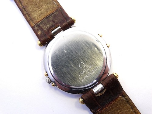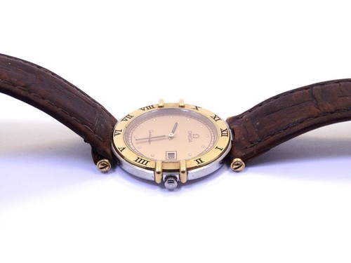 Découvrez le charme d’une époque révolue : La montre OMEGA CONSTELLATION 33mm en or 18k avec bezel, numéraux romains et mouvement quartz 1379