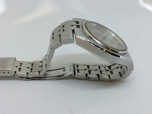 Le Vintage Omega Silver Electronic Constellation F300HZ Watch REF: 198.0004 présente un design élégant et raffiné, typique des montres Omega de l’époque. Le boîtier en acier inoxydable est recouvert d’une fine couche d’argent, ce qui lui donne une teinte argentée distinctive. Le cadran, de couleur noir mat, est orné de indexes et de nombres en relief, ce qui facilite la lecture de l’heure. Les aiguilles, fines et élégantes, complètent parfaitement le design du cadran.