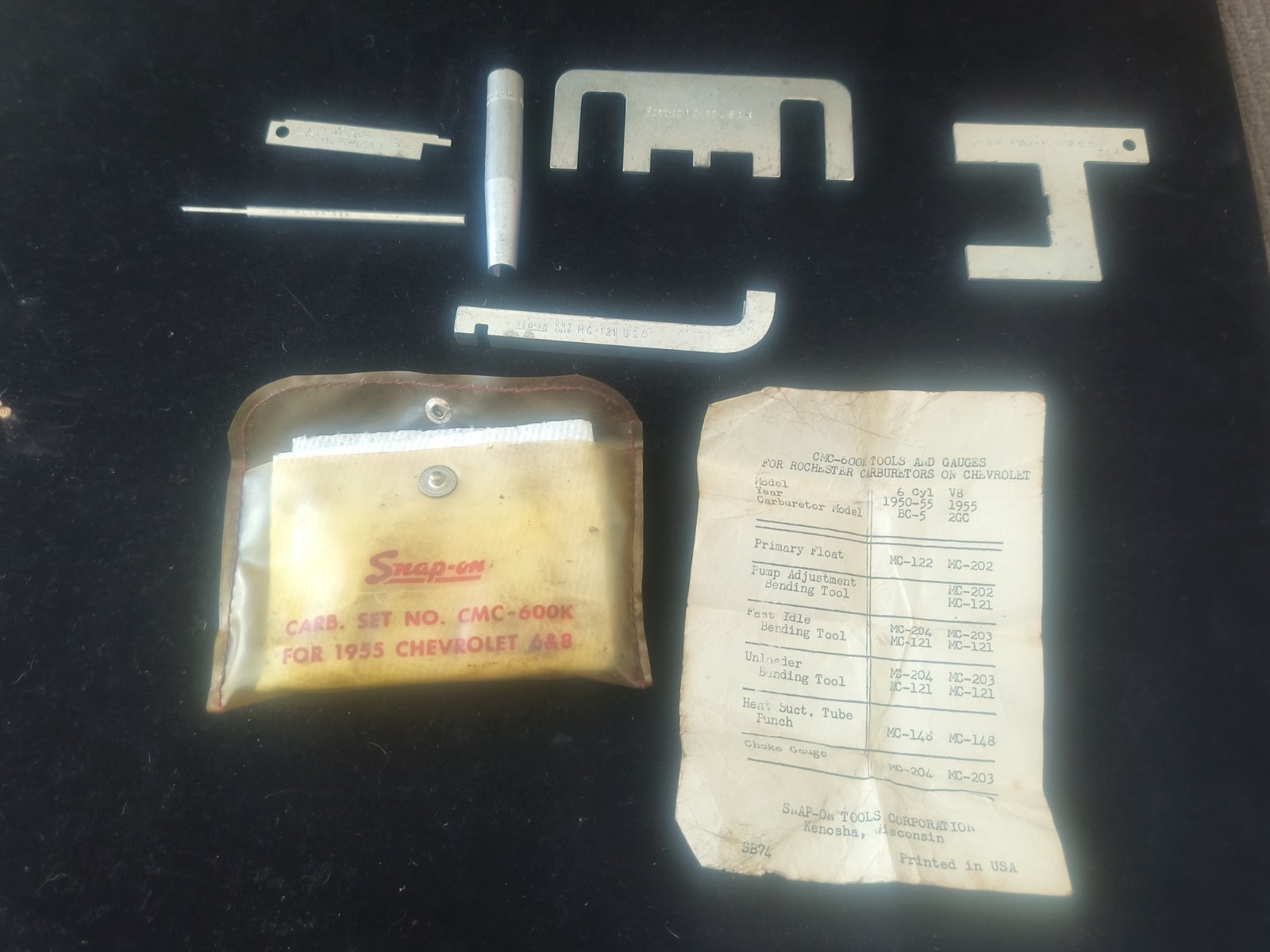 VINTAGE Snap-on Carburetor SET TOOLS CMC-600K 1955 CHEVY 6 Pieces USA RARE