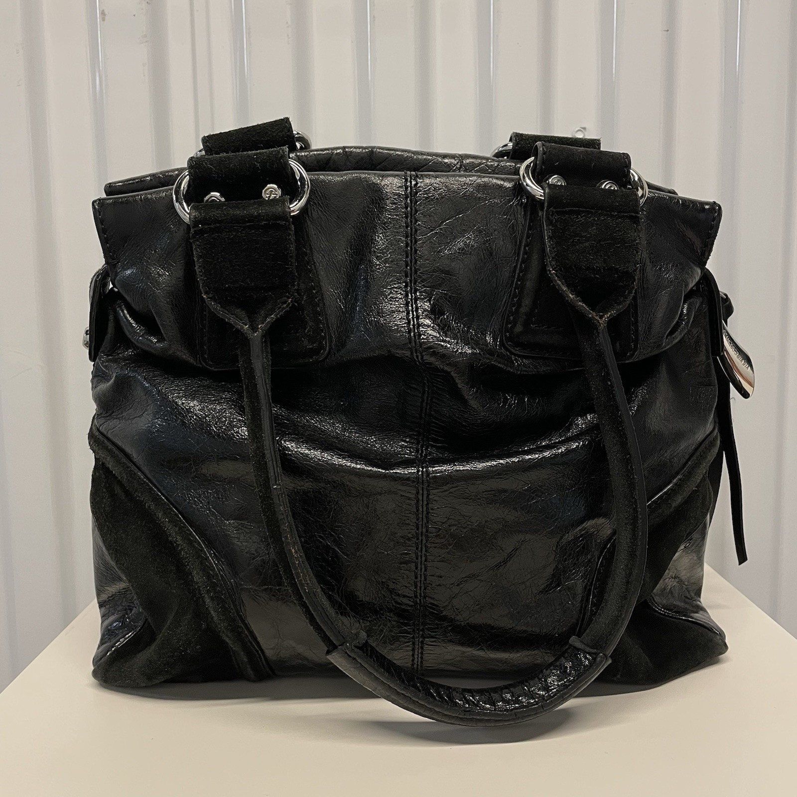 Y2K Francesco Biasia Black Leather/Suede Moto Hobo Shoulder Hand Bag